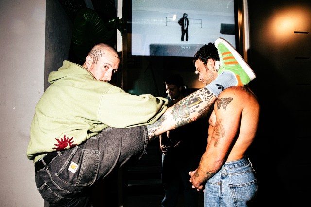 Holman: We just come up with these crazy ideas, and people try to facilitate them. I realized the other day that on a subconscious level, it’s heavily influenced by The Slim Shady and Marshall Mathers [LPs and their music videos]. We grew up in the 2000s watching “My Name Is” and seeing Eminem in his Superman suit with his bum showing and putting it on people’s faces, so that’s the era of music videos that we hold highly.
